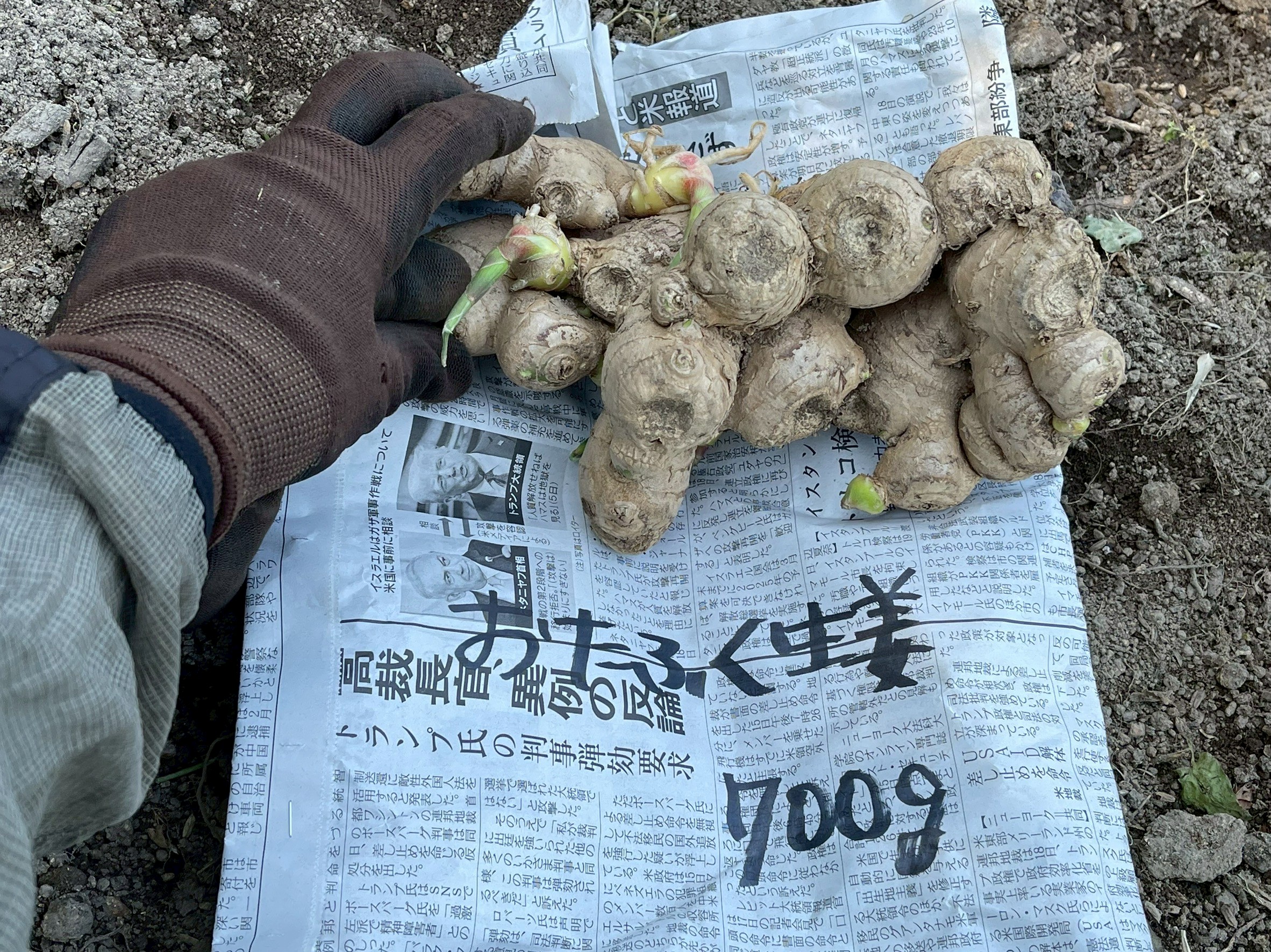 とりあえず倒れてる玉ねぎを干すべく持ち帰る