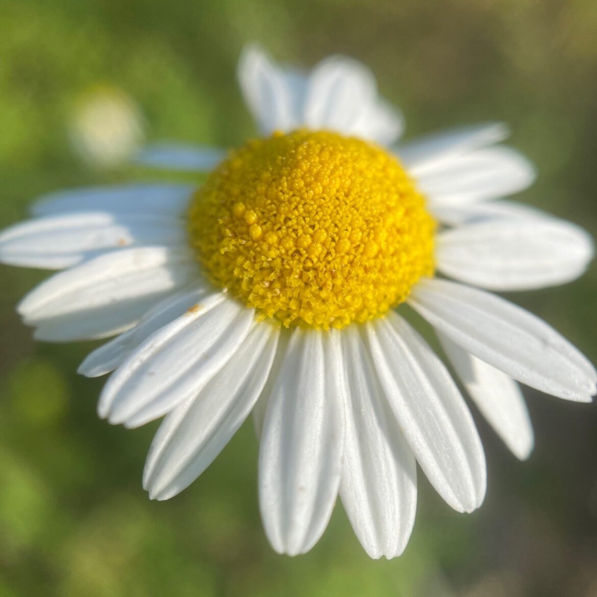 - カモミール。めっちゃ弱々しい苗だけど、早くも花が咲いた!