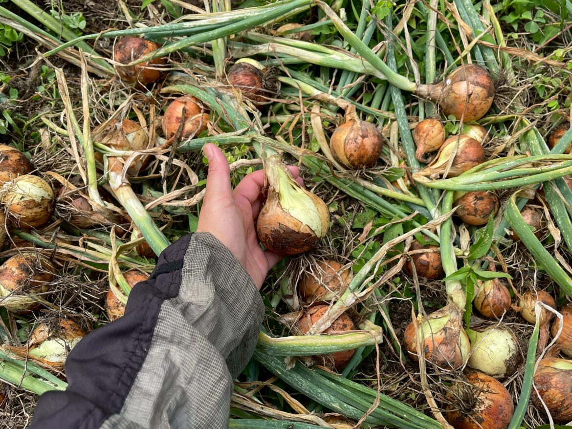 玉ねぎは水分必要で肥料食い。だけど、水やりもせずに、立派にできました!去年より大きさ大きいのがたくさんとれました!