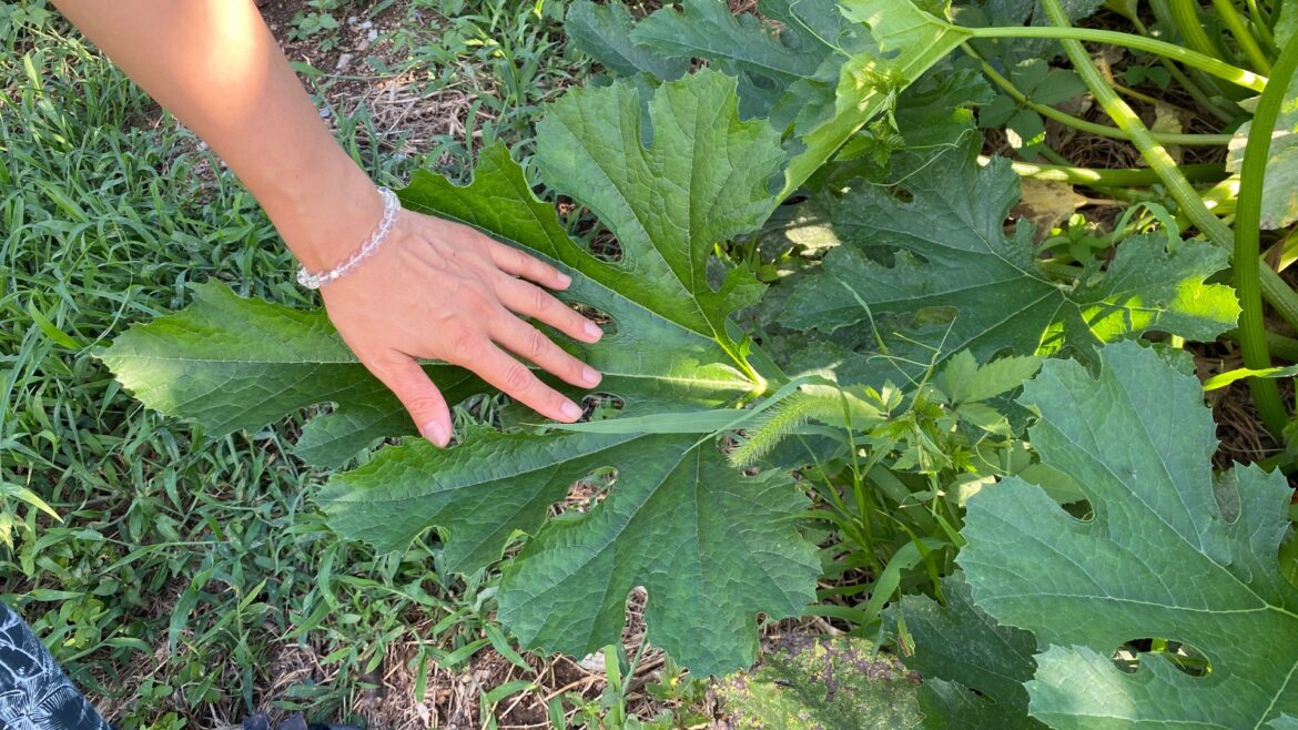 手前と奥のズッキーニの葉の大きさの違い、撮ってみた